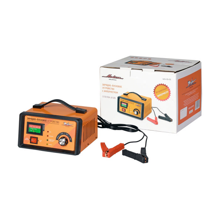 Зарядно-пусковое устройство имеет ручной режим зарядки с селектором максимального зарядного тока 2/10 Ампер и максимальным пусковым током 55А.